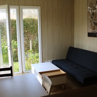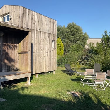 Chaleureuse Tiny house de 30m2 dans un agréable lotissement familial, disposant d'un grand jardin où vous pourrez vous détendre en toute quiétude. Idéal pour passer des vacances à deux en déconnection totale.
